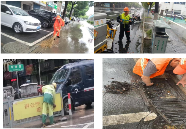 掃把在濕潤路面劃過,將淤積的塵埃抹去;雨水沖入垃圾容器,帶走日積月累的污痕;灰暗的隔離欄在反復擦洗下,映照出晶瑩微光。積水的低洼處,更有身影俯身探入渾濁,只為疏通阻塞的下水道——那些被淤泥封堵的城市血脈,因他們而重新搏動。